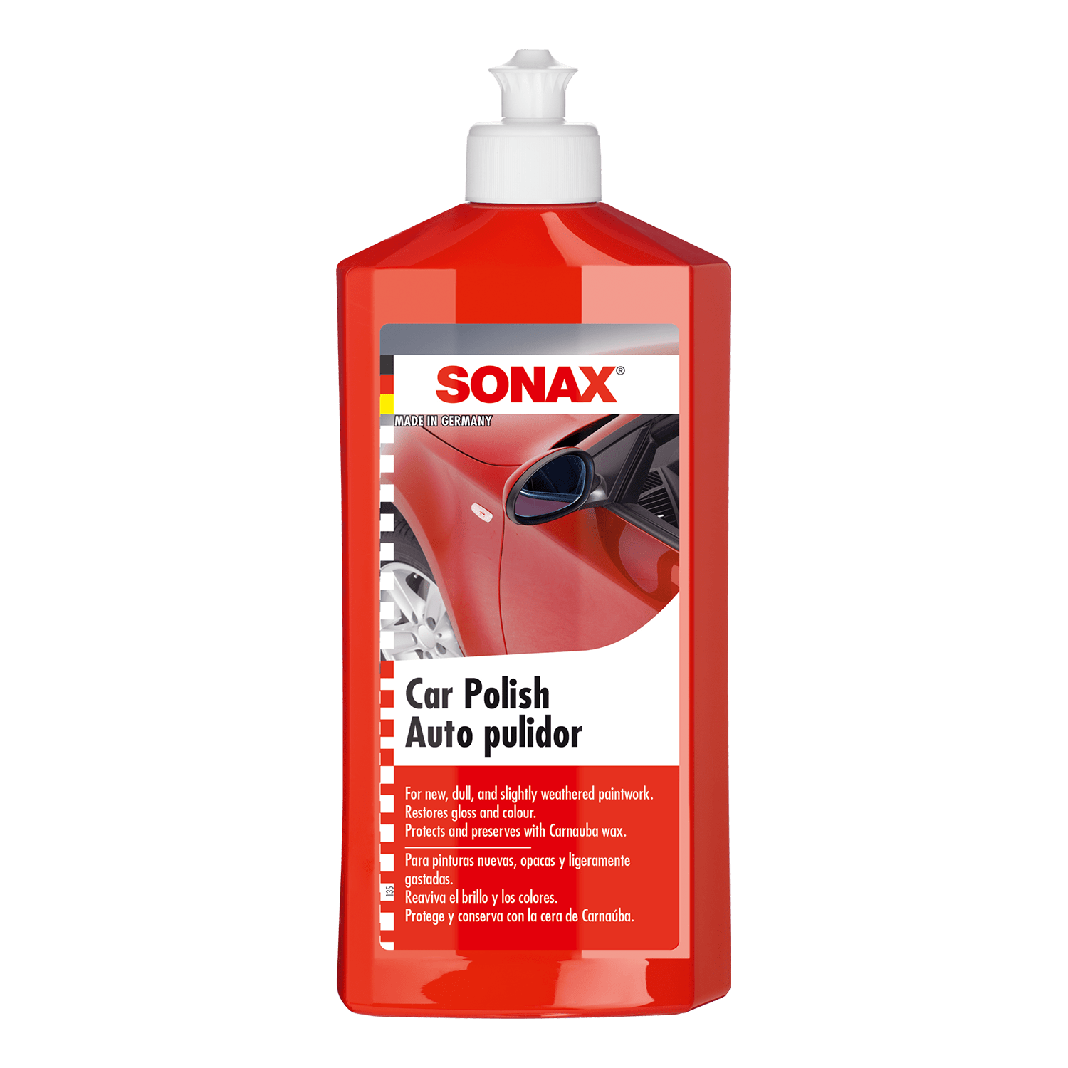 Polish for removing slight scratches and restoring the shine to dull paintwork. Easily applied, it cleans, freshens up the colours and protects the treated surfaces. Its natural Carnauba wax content ensures long-lasting protection. Convincingly restores the deep shine.